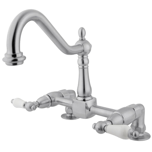 Original price $454.95Original price $454.95 - Original price $454.95Original price $454.95Current price $341.21$341.21 - $341.21Current price $341.21| /Kingston Heritage KS1141PL Two-Handle 2-Hole Deck Mount Bridge Kitchen Faucet, Polished Chrome