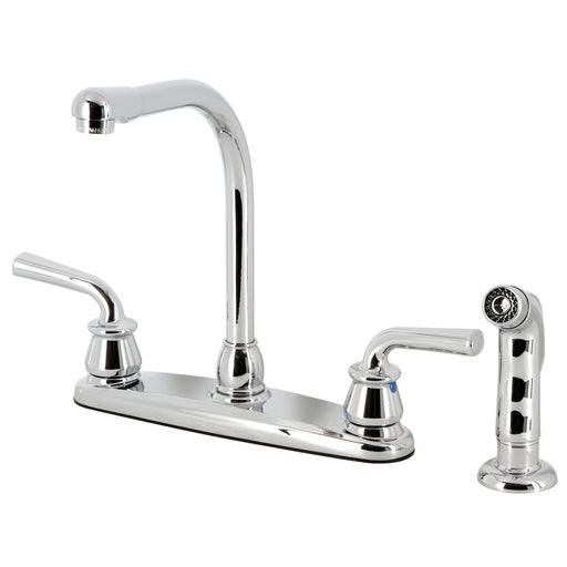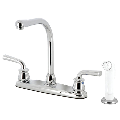 Original price $244.95Original price $244.95 - Original price $244.95Original price $244.95Current price $183.71$183.71 - $183.71Current price $183.71| /Kingston Tulare KB711RXL - Restoration Two-Handle 4-Hole 8" Centerset Kitchen Faucet with White Side Sprayer, Polished Chrome