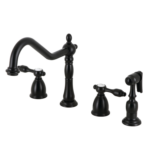 Kingston BrassKingston Heirloom KB1790TALBS - Tudor Double-Handle 4-Hole Widespread Kitchen Faucet with Brass Sprayer, Matte Black Offering a nod toward the p...