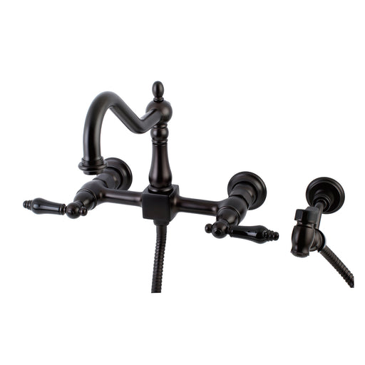 Kingston BrassKingston Heirloom KS1245PKLBS - Duchess Two-Handle 3-Hole Wall Mount Bridge Kitchen Faucet with Brass Sprayer, Oil Rubbed Bronze Crafted in comm...