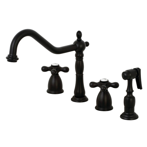 Kingston BrassKingston Heirloom KB1790AXBS - Heritage Double-Handle 4-Hole Widespread Kitchen Faucet with Brass Sprayer, Matte Black A lavish spark of traditi...
