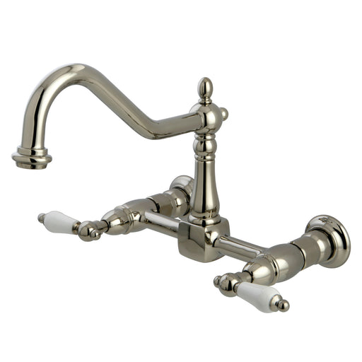 Original price $409.95 - Original price $409.95Original price $409.95$409.95$409.95 - $409.95Current price $409.95| /Kingston Heirloom KS1246PL - Heritage Two-Handle 2-Hole Wall Mount Bridge Kitchen Faucet, Polished Nickel