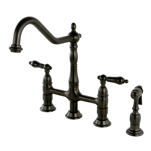 Kingston BrassKingston Heirloom KS1275PKLBS - Duchess Two-Handle 4-Hole Deck Mount Bridge Kitchen Faucet with Brass Sprayer, Oil Rubbed Bronze Crafted in comm...