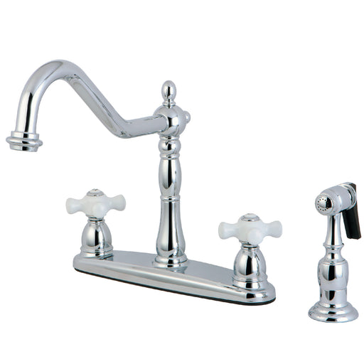 Kingston BrassKingston Heirloom KB1751PXBS - Heritage Two-Handle 4-Hole 8" Centerset Kitchen Faucet with Brass Sprayer, Polished Chrome A lavish spark of trad...