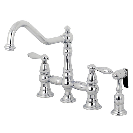 Kingston BrassKingston Heirloom KS3271ALBS - Restoration Two-Handle 4-Hole Deck Mount Bridge Kitchen Faucet with Brass Sprayer, Polished Chrome Classical arti...