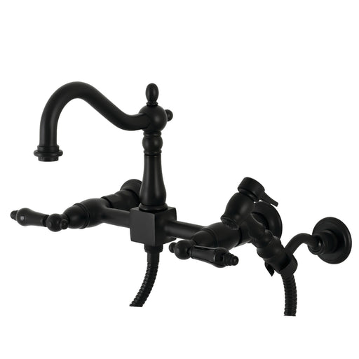 Kingston BrassKingston Heirloom KS1260PKLBS - Duchess Two-Handle 3-Hole Wall Mount Bridge Kitchen Faucet with Brass Sprayer, Matte Black Crafted in commendati...