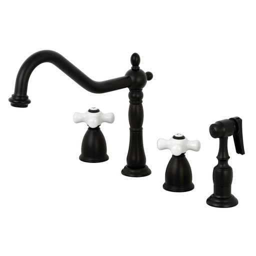 Kingston BrassKingston Heirloom KB1790PXBS - Heritage Double-Handle 4-Hole Widespread Kitchen Faucet with Brass Sprayer, Matte Black A lavish spark of traditi...