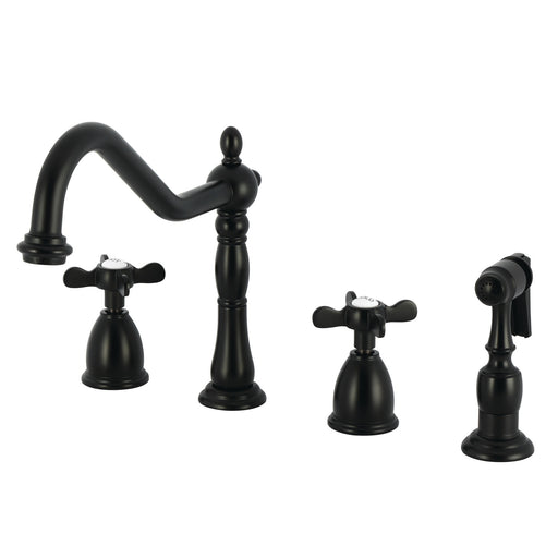 Kingston BrassKingston Heirloom KB1790BEXBS - Essex Double-Handle 4-Hole Widespread Kitchen Faucet with Brass Sprayer, Matte Black The spirit of the Victorian...