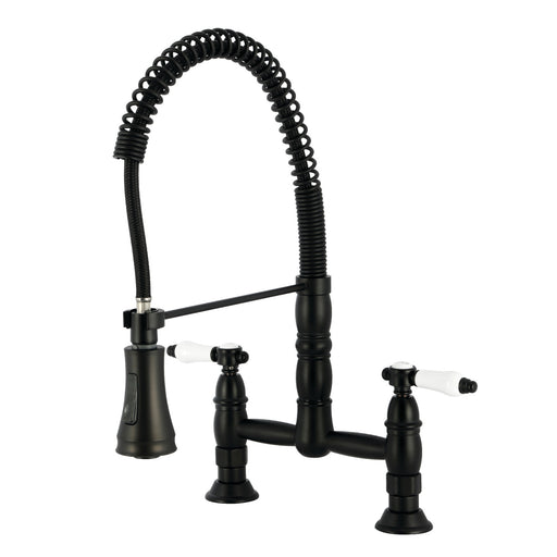 Original price $779.95 - Original price $779.95Original price $779.95$779.95$779.95 - $779.95Current price $779.95| /Kingston Tulare GS1270BPL - Bel-Air Double-Handle 2-Hole Deck-Mount Pre-Rinse Bridge Kitchen Faucet, Matte Black