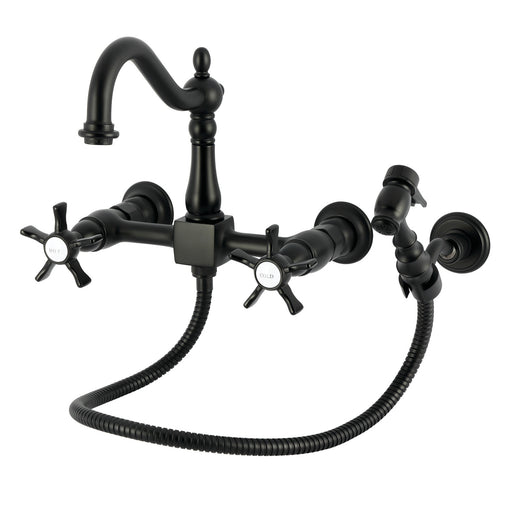 Kingston BrassKingston Heirloom KS1260ZXBS - Millennium Two-Handle 3-Hole Wall Mount Bridge Kitchen Faucet with Brass Sprayer, Matte Black The eclectic style ...