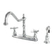 Kingston Heirloom KB1751BEXBS - Essex Two-Handle 4-Hole 8" Centerset Kitchen Faucet with Brass Sprayer, Polished Chrome