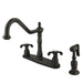 Kingston Heirloom KB1755TXBS - French Country Two-Handle 4-Hole 8" Centerset Kitchen Faucet with Brass Sprayer, Oil Rubbed Bronze