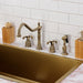 The dainty detailing of this faucet provides the delicacy of European antiquity along with top-of-the-line craftsmanship. Able to fit a variety of sink set-ups, widespread kitchen faucets can be utilized in several multi-hole configurations. These are ideal for larger kitchens, as they are more spread apart, and with the included side-sprayer feature a 4-hole installation. The antique brass finish will also add a glistening elegance to your kitchen ensemble. Allow the brass construction to provide a sturdy and reliant fixture.