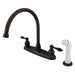 Kingston Heirloom KB725AL - Vintage Two-Handle 4-Hole 8" Centerset Kitchen Faucet with Side Sprayer, Oil Rubbed Bronze