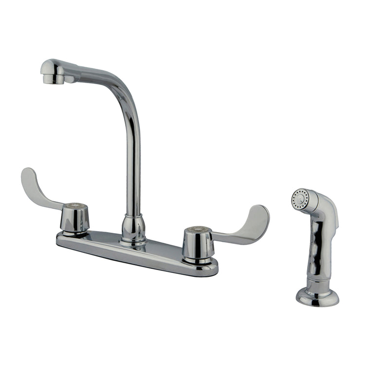 Kingston Tulare KB762SP - Magellan Two-Handle 4-Hole 8" Centerset Kitchen Faucet with Side Sprayer, Polished Chrome