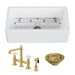 Kaolin 33-Inch Fireclay Farmhouse Kitchen Sink with Deck Mount Bridge Kitchen Faucet with Side Sprayer and Basket Strainer, Polished Brass