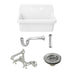 Add character and charm to your kitchen with the Petra Galley wall-mounted service sink, featuring a spacious single bowl, glossy enameled finish, and durable ceramic construction. Pre-drilled for 8” center-to-center faucet installation, it blends farmhouse charm with practical functionality. Paired with a striking wall-mount faucet that channels 18th-century European flair—enhanced by a straight spout and swivel function—this combo makes a bold statement. Finished with a spin-and-lock strainer for cohesive style and easy maintenance.
