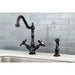 Kingston Heirloom KS1235BEXBS - Essex Two-Handle 2-or-4 Hole Kitchen Faucet with Brass Sprayer, Oil Rubbed Bronze