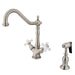 Kingston Heirloom KS1238PXBS - Heritage Two-Handle 2-or-4 Hole Kitchen Faucet with Brass Sprayer, Brushed Nickel
