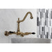 Kingston Heirloom KS1243PKL - Duchess Two-Handle 2-Hole Wall Mount Bridge Kitchen Faucet, Antique Brass