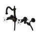 Kingston Heirloom KS1260PXBS - Heritage Two-Handle 3-Hole Wall Mount Bridge Kitchen Faucet with Brass Sprayer, Matte Black