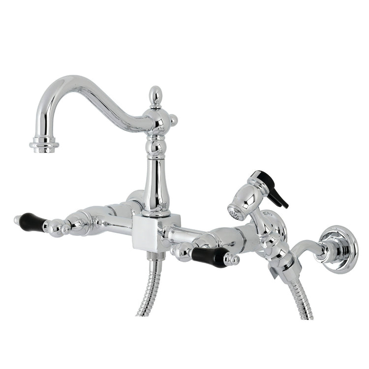 Kingston Heirloom KS1261PKLBS - Duchess Two-Handle 3-Hole Wall Mount Bridge Kitchen Faucet with Brass Sprayer, Polished Chrome
