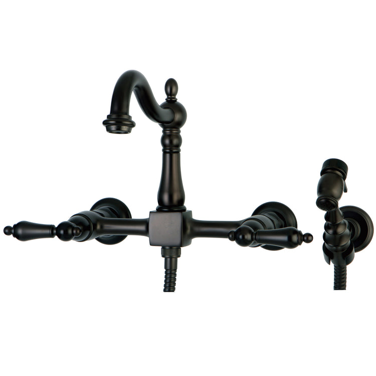 Kingston Heirloom KS1265ALBS - Heritage Two-Handle 3-Hole Wall Mount Bridge Kitchen Faucet with Brass Sprayer, Oil Rubbed Bronze