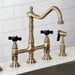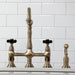 Kingston Heirloom KS1273PKXBS - Duchess Two-Handle 4-Hole Deck Mount Bridge Kitchen Faucet with Brass Sprayer, Antique Brass
