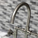 This faucet's modern features create a bold and edgy design in your kitchen. While bridge faucets typically have a traditional appeal, this particular design is a more modern interpretation. Allow the black stainless finish to pop against your surrounding kitchen decor due to the added architectural elements. The brass construction and swivel abilities provide a sturdy and reliant fixture, great for both dual and single bowl sinks. Utilize the included matching finish side-sprayer for convenience in cleaning hard-to-reach areas.