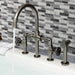 Kingston Sona KS2334CG - Fuller Two-Handle 4-Hole Deck Mount Industrial Style Bridge Kitchen Faucet with Brass Sprayer, Black Stainless