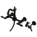 Kingston Heirloom KS2440ALBS - Heritage Two-Handle 3-Hole Wall Mount Bridge Kitchen Faucet with Brass Sprayer, Matte Black
