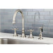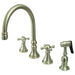 Kingston Tulare KS2798KXBS - Governor Double-Handle 4-Hole Widespread Kitchen Faucet with Brass Sprayer, Brushed Nickel