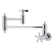 The exquisite design of this faucet tastefully flatters the elegant architecture of traditional homes with its fine detailing. The foldable swing arms of this pot filler allow for extendable reach of up to 22" from the wall and provide long-lasting function due to their sturdy brass construction and ceramic cartridge. As an excellent tool to quickly, easily, and stylishly fill pots, eliminate strain on your back. Pot-fillers are useful fixtures placed directly above the stove, providing easily accessible water. Additionally, the dual handles prevent unwanted water spillage while enhancing the traditional theme.