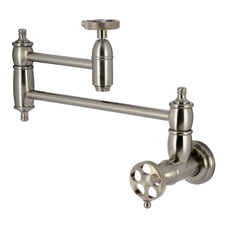 Kingston Heirloom KS3108RKZ - Wendell Two-Handle 1-Hole Wall Mount Pot Filler Faucet with Knurled Handle, Brushed Nickel