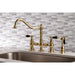 Kingston Heirloom KS3272PKLBS - Duchess Two-Handle 4-Hole Deck Mount Bridge Kitchen Faucet with Brass Sprayer, Polished Brass