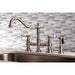 Kingston Heirloom KS3278PLBS - Restoration Two-Handle 4-Hole Deck Mount Bridge Kitchen Faucet with Brass Sprayer, Brushed Nickel
