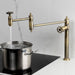 The exquisite design of this collection tastefully flatters the elegant architecture of traditional homes with its fine detailing. The foldable swing arms of this deck-mounted pot filler with foldable swing arms, designed to provide an extendable reach of up to 20 inches without the need to open walls to install additional plumbing pipes. Effortlessly fill pots with style and ease while eliminating back strain. Pot-fillers are a useful addition to your kitchen ensemble, positioned above the stove or on the counter, offering easily accessible water for quick and hassle-free pot filling. Dual handles ensure no water spillage and add a touch of tradition to your kitchen ensemble.