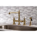 Kingston Tulare KS7272PXBS - English Country Two-Handle 4-Hole Deck Mount Bridge Kitchen Faucet with Brass Sprayer, Polished Brass