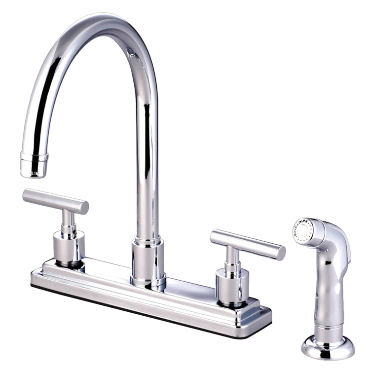 Kingston Sona KS8791CML - Manhattan Two-Handle 4-Hole 8" Centerset Kitchen Faucet with Side Sprayer, Polished Chrome