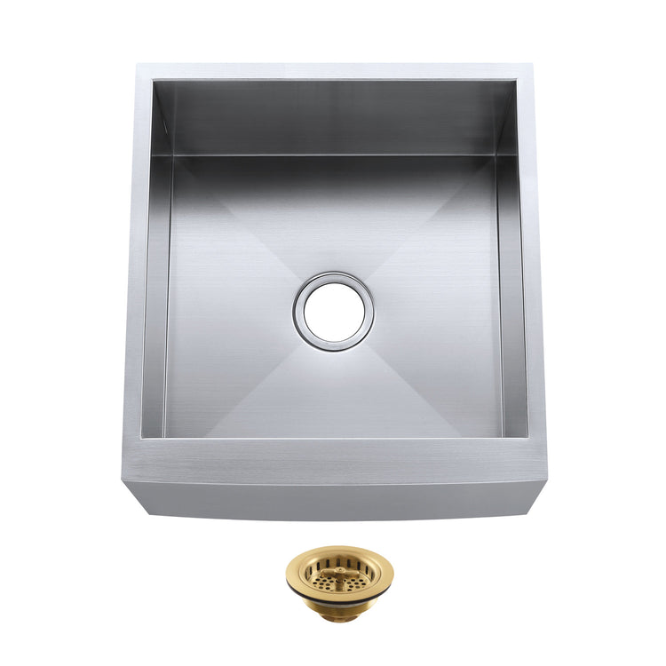 Kingston Sona KUF212110BN7 - Denver 21-Inch Stainless Steel Single Bowl Farmhouse Sink with Strainer, Stainless Steel/Brushed Brass