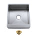 The Denver collection brings forth bold design and smooth lines, enhancing your contemporarily styled home. The Denver Stainless Steel Farmhouse Single Bowl Sink with Strainer in particular, is constructed from high quality 304 grade rust-resistant stainless steel. The brushed finish is also resistant to scratches, and with the sink's sound dampening technology, sound and vibrations are reduced. Farmhouse sinks have an apron front that causes the sink to be the centerpiece of kitchen design. This unique feature prevents water spillage on cabinetry while adding aesthetic appeal. Allow this farmhouse sinks to impeccably complete your contemporarily styled kitchen.