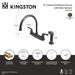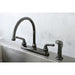 Kingston Water Onyx NB790SP Two-Handle 4-Hole 8" Centerset Kitchen Faucet with Side Sprayer, Black Stainless Steel