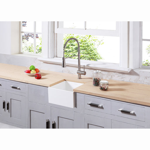 Kingston BrassKingston Sona GKUSA15158 - Arcticstone 15-Inch Solid Surface White Stone Apron-Front Single Bowl Farmhouse Bar Prep Sink with Strainer, Matte Whit...