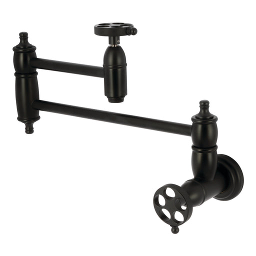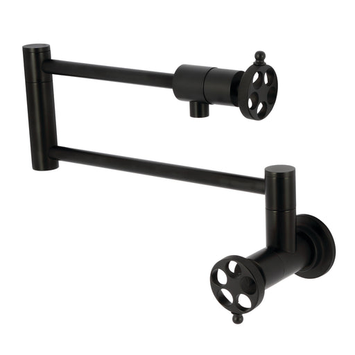 Kingston BrassKingston Heirloom KS3100RKZ - Wendell Two-Handle 1-Hole Wall Mount Pot Filler Faucet with Knurled Handle, Matte Black The exquisite design of th...
