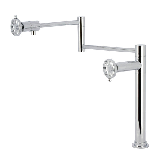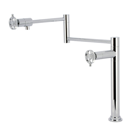 Kingston BrassKingston Sona KS4701RKZ - Wendell Two-Handle 1-Hole Deck Mount Pot Filler Faucet with Knurled Handle, Polished Chrome Upgrade your kitchen with ...