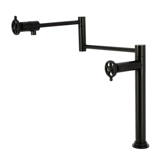 Kingston BrassKingston Sona KS4700RKX - Webb Two-Handle 1-Hole Deck Mount Pot Filler Faucet with Knurled Handle, Matte Black Upgrade your kitchen with our sle...