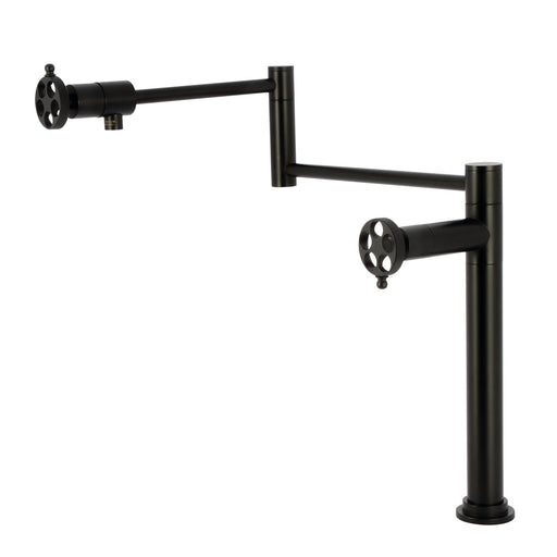 Kingston BrassKingston Sona KS4705RKX - Webb Two-Handle 1-Hole Deck Mount Pot Filler Faucet with Knurled Handle, Oil Rubbed Bronze Upgrade your kitchen with o...