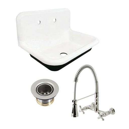 Kingston BrassKingston Brass Kitchen Sink Combo - Towne 30-Inch Cast Iron Wall Mount Single Bowl Kitchen Sink with Wall-Mount Bridge Kitchen Faucet and Basket St...