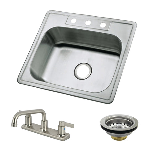 Kingston BrassKingston Brass Kitchen Sink Combo - Studio 25-Inch Stainless Steel 3-Hole Single Bowl Drop-In Kitchen Sink with Centerset Kitchen Faucet and Basket...