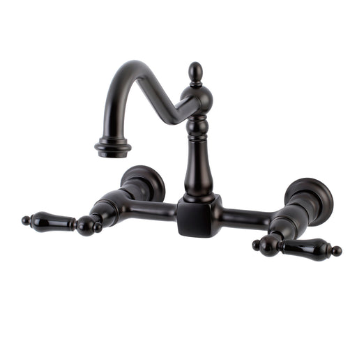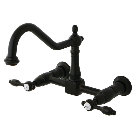 Kingston BrassKingston Heirloom KS1245TAL - Tudor Two-Handle 2-Hole Wall Mount Bridge Kitchen Faucet, Oil Rubbed Bronze Offering a nod toward the past, this f...